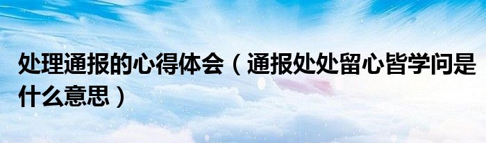 今天凤捷来为大家解答以上的问题。处理通报的心得体会,通报处处留心皆学问是什么意思相信很多小伙伴还不知道,现在让我们一起来看看吧!